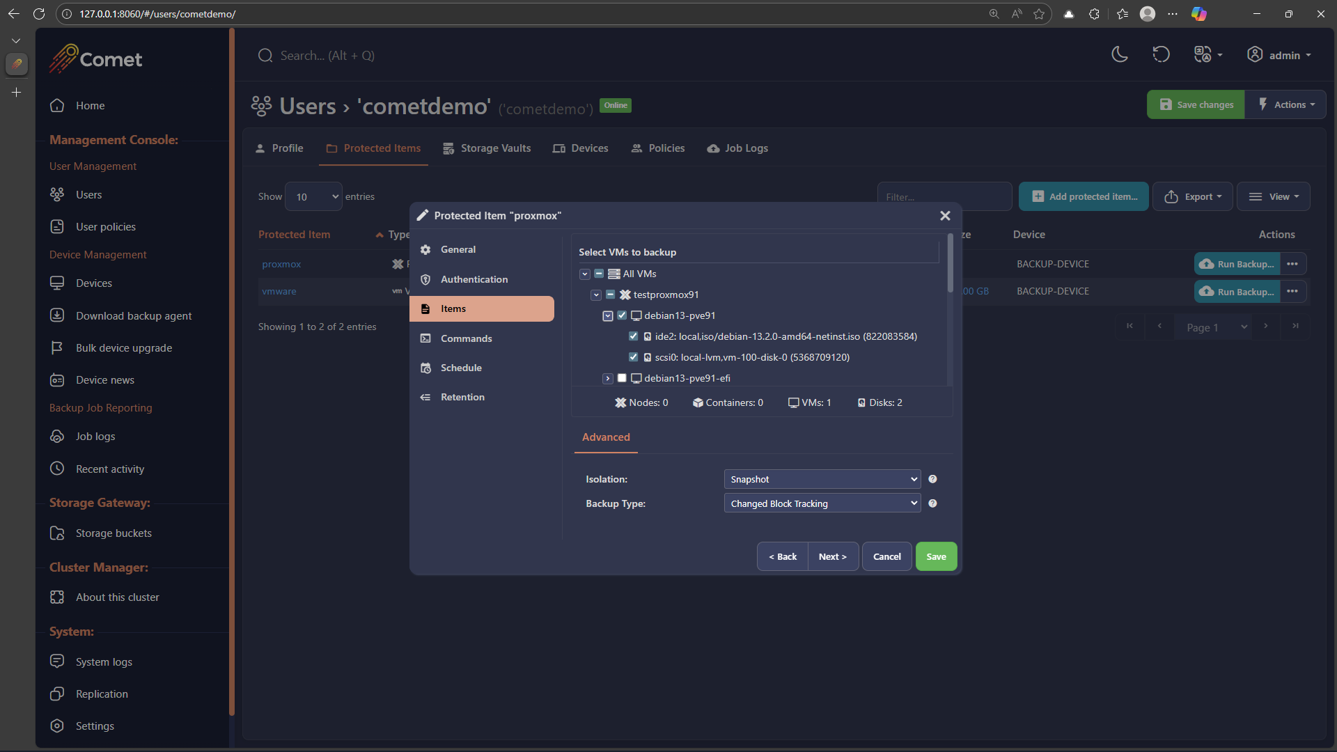+The Comet Backup agent must be running on the same network as the target Proxmox Cluster, and the Proxmox Cluster version must be Proxmox VE 8.x or higher.
